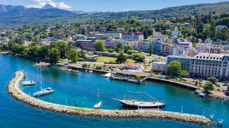 Station thermale et port de plaisance à 15 minutes d'Évian, idéale pour des séminaires bien-être et des activités nautiques complémentaires.